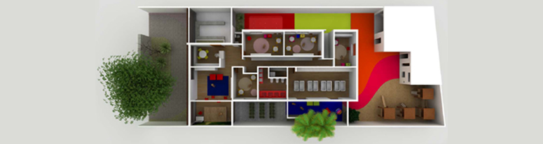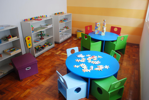 Os espaços incentivam as relações. As salas de aulas são interativas, coloridas, aconchegantes, com materiais que despertam a atenção e o interesse. São convidativas a um mundo de imaginação e brincadeiras, que serão o principal meio para introdução dos pequenos à alfabetização.